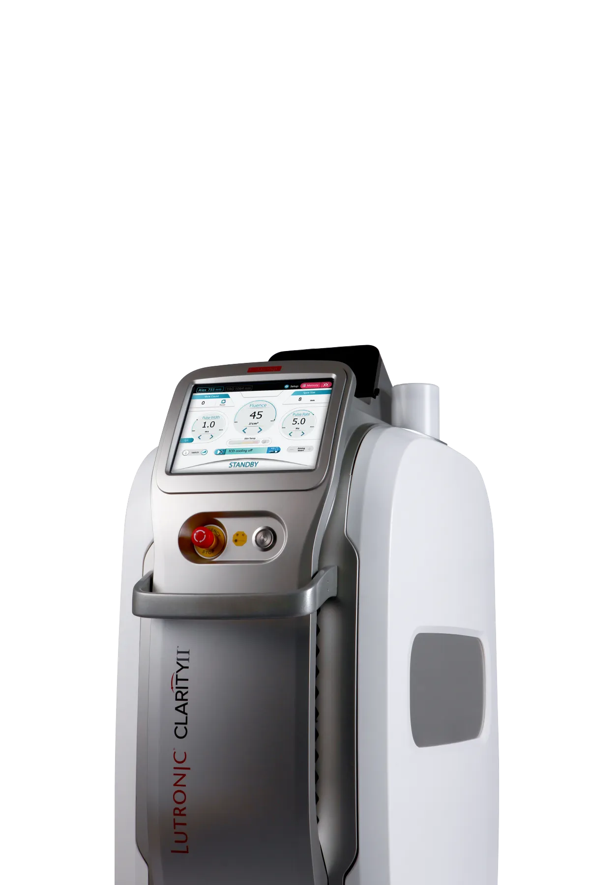 At AM Aesthetics, we use the Clarity II by Lutronic, a dual-wavelength system (755 nm Alexandrite + 1064 nm Nd:YAG) that safely treats all Fitzpatrick skin types. It’s fast, precise, and—thanks to built-in cooling—surprisingly comfortable.