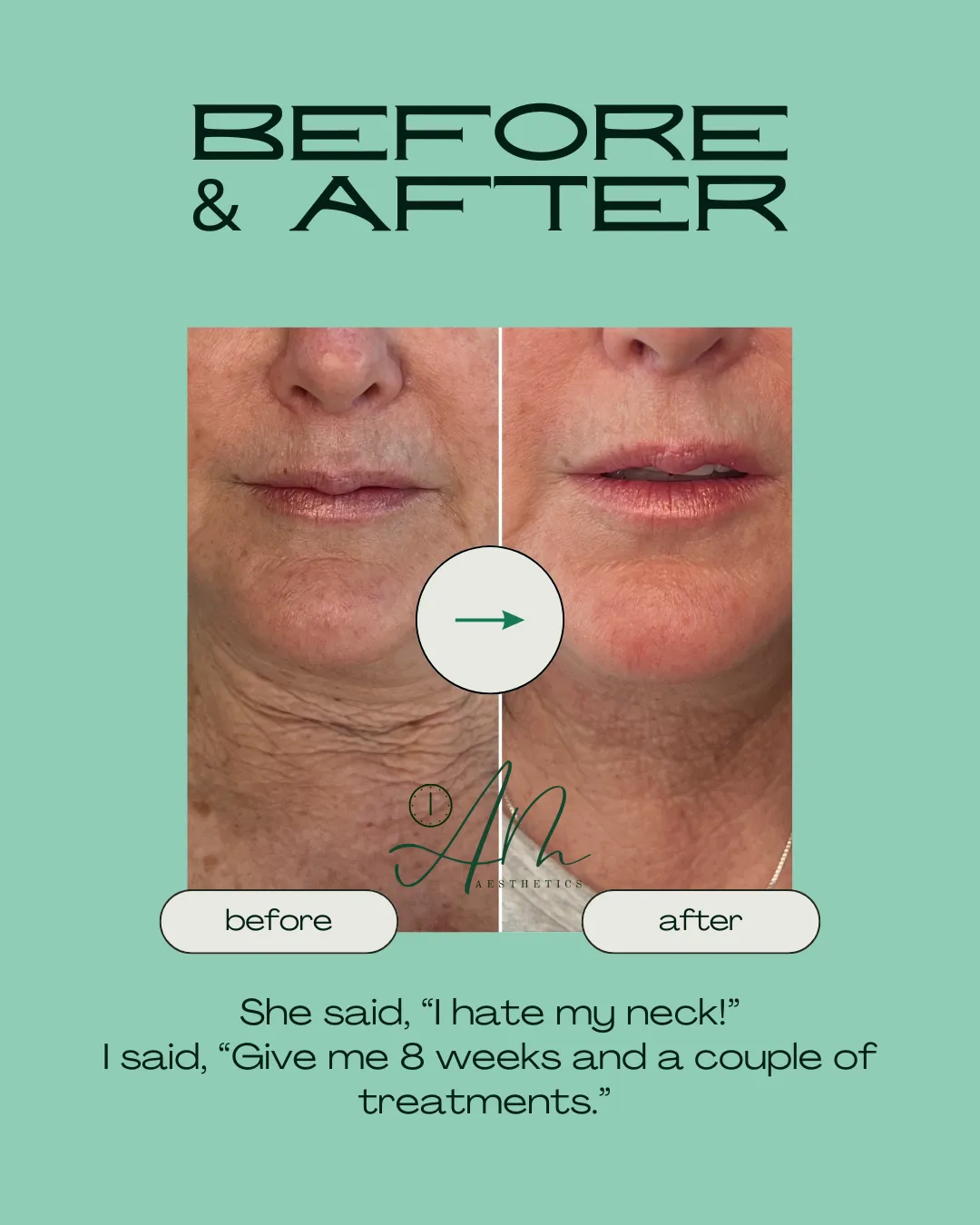 Your skin will feel tighter and smoother within days, with continued improvement over the next 4–6 weeks.